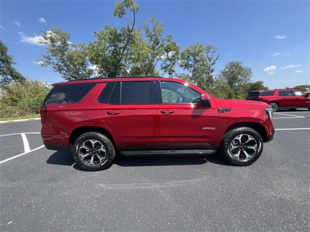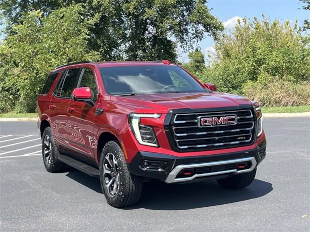 2025 GMC Yukon AT4 4WD, 4-Way Power Driver Lumbar Seat Adjuster, 4-Way Power Front Passenger Lumbar Seat Adjuster, AutoSense Hands-Free Power Liftgate, Black Roof-Mounted Luggage Rack Side Rails, Body-Color Door Handles, Bright Front & Rear Door Sill Plates, Dual Exhaust System, Front High-Approach Angle Fascia, Heavy-Duty Air Filter, Hill Descent Control, Navigation system: GMC Connected Navigation, Perforated Heated & Ventilated Dr & Frt Pass Seats, Power Tilt & Telescopic Steering Column, Preferred Equipment Group 4SB, Red Horizontal-Mounted Recovery Hooks.