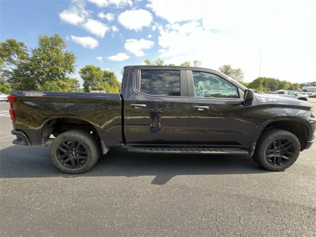 Cloth Rear Seat w/Storage Package, Custom Convenience Package (Electric Rear-Window Defogger, EZ Lift Power Lock & Release Tailgate, LED Cargo Area Lighting, Remote Vehicle Starter System, and Theft Deterrent System (Unauthorized Entry)), Dark Essentials Package (LPO) (Black Name Plates (LPO)), Preferred Equipment Group 2CX (10-Way Power Driver Seat w/Lumbar, 120-Volt Bed Mounted Power Outlet, 120-Volt Instrument Panel Power Outlet, 3.5 Monochromatic Display Driver Info Center, Auto-Locking Rear Differential, Bluetooth® For Phone, Chevrolet Connected Access Capable, Color-Keyed Carpeting Floor Covering, Compass, Deep-Tinted Glass, Dual Rear USB Ports (Charge Only), Electrical Steering Column Lock, Electronic Cruise Control, Front Rubberized Vinyl Floor Mats, HD Rear Vision Camera, Manual Tilt Wheel Steering Column, OnStar & Chevrolet Connected Services Capable, Performance Red Recovery Hooks, Power Front Windows w/Driver Express Up/Down, Power Front Windows w/Passenger Express Down, Power Rear Windows w/Express Down, Rear 60/40 Folding Bench Seat (Folds Up), Rear Rubberized-Vinyl Floor Mats, Remote Keyless Entry, SiriusXM Radio, Standard Tailgate, Wi-Fi Hot Spot Capable, and Wireless Phone Projection), Suspension Package (Heavy-Duty Air Filter and Hill Descent Control), Trailering Package (Hitch Guidance), Silverado 1500 Custom Trail Boss, 4D Crew Cab, EcoTec3 5.3L V8, 10-Speed Automatic, 4WD, Dark Ash Metallic, Black Cloth, 170 Amp Alternator, 220 Amp Alternator, 4-Wheel Disc Brakes, 40/20/40 Front Split-Bench Seat, 6 Speakers, 6-Speaker Audio System, ABS brakes, Air Conditioning, Alloy wheels, AM/FM radio: SiriusXM, Apple CarPlay/Android Auto, Auto High-beam Headlights, Automatic Emergency Braking, Auxiliary External Transmission Oil Cooler, Black Tailgate CHEVROLET Lettering (LPO), Brake assist, Chevytec Spray-On Black Bedliner, Cloth Seat Trim, Delay-off headlights, Driver door bin, Driver vanity mirror, Dual Exhaust w/Polished Outlets, Dual front impact airbags, Dual front side impact airbags, Electronic Stability Control, External Engine Oil Cooler, Following Distance Indicator, Forward Collision Alert, Front anti-roll bar, Front Center Armrest w/Storage, Front Pedestrian Braking, Front reading lights, Front wheel independent suspension, Fully automatic headlights, Heated door mirrors, Illuminated entry, Integrated Trailer Brake Controller, IntelliBeam Automatic High Beam On/Off, Lane Keep A