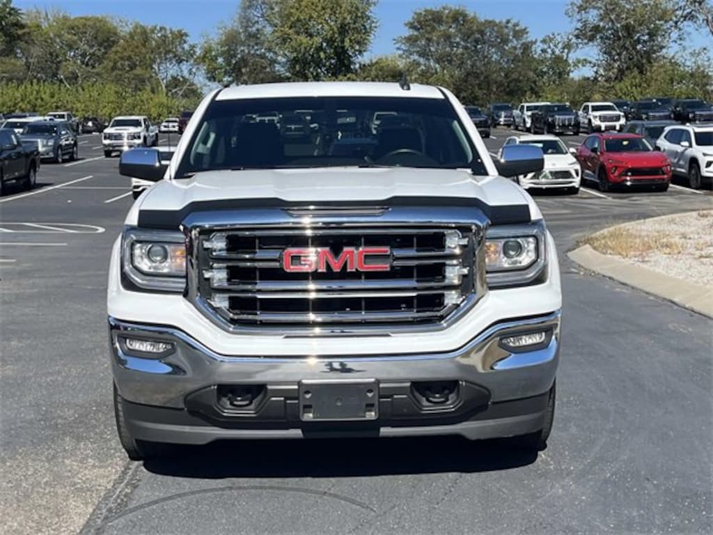Off-Road Suspension Package (Hill Descent Control), Preferred Equipment Group 4SA (110-Volt AC Power Outlet, 150 Amp Alternator, 1st & 2nd Row Color-Keyed Carpeted Floor Mats, 2-Speed Active Electronic AutoTrac Transfer Case, 4.2 Diagonal Color Display Driver Info Center, Auto-Dimming Inside Rear-View Mirror, Auxiliary External Transmission Oil Cooler, Chrome Bodyside Moldings, Chrome Door Handles, Chrome Mirror Caps, Color-Keyed Carpeting, Deep-Tinted Glass, Driver & Front Passenger Illuminated Vanity Mirrors, Dual-Zone Automatic Climate Control, Electric Rear-Window Defogger, EZ Lift & Lower Tailgate, Front Frame-Mounted Black Recovery Hooks, GMC 4G LTE, GMC Connected Access, Heavy-Duty Rear Locking Differential, Leather Wrapped Steering Wheel w/Cruise Controls, LED Cargo Box Lighting, LED Tailamps w/Signature, Manual Tilt/Telescoping Steering Column, OnStar & GMC Connected Services Capable, Power Adjustable Pedals, Power Folding & Adjustable Heated Outside Mirrors, Power Windows w/Driver Express Up & Down, Rear 60/40 Folding Bench Seat (Folds Up), Rear Wheelhouse Liners, Remote Keyless Entry, Remote Locking Tailgate, Remote Vehicle Starter System, Single Slot CD/MP3 Player, Steering Wheel Audio Controls, Theft Deterrent System (Unauthorized Entry), Thin Profile LED Fog Lamps, and Universal Home Remote), SLT Premium Package (20 x 9 Polished Aluminum Wheels, 6 Rectangular Chromed Tubular Assist Steps, and Bose Speaker System), Trailering Equipment, Sierra 1500 SLT, 4D Crew Cab, EcoTec3 5.3L V8, 6-Speed Automatic Electronic with Overdrive, 4WD, Summit White, Jet Black Leather, 10-Way Power Driver's Seat Adjuster, 4-Wheel Disc Brakes, 40/20/40 Front Split Bench Seat, 6 Speakers, 6-Speaker Audio System, ABS brakes, Adjustable pedals, Air Conditioning, Alloy wheels, AM/FM radio: SiriusXM, Auto-dimming door mirrors, Auto-dimming Rear-View mirror, Automatic temperature control, Bodyside moldings, Brake assist, Bumpers: chrome, CD player, Compass, Delay-off headlights, Driver door bin, Driver vanity mirror, Dual front impact airbags, Dual front side impact airbags, Electronic Stability Control, Exterior Parking Camera Rear, Floor Mounted Console, Front anti-roll bar, Front Center Armrest w/Storage, Front dual zone A/C, Front