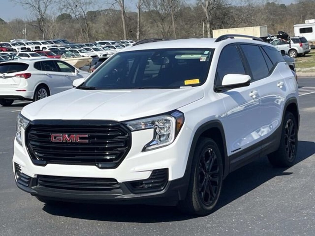2022 GMC Terrain SLE Summit White Terrain SLE, 4D Sport Utility, 1.5L DOHC, 9-Speed Automatic, AWD, Summit White, Jet Black Cloth, 8-Way Power Driver Seat Adjuster, Adaptive Cruise Control, Black GMC Center Caps w/Red GMC Lettering, Black Mirror Caps, Darkened Front Grille, Driver & Front Passenger Heated Seats, Driver Convenience Package, Dual-Zone Automatic Climate Control, Elevation Edition, GMC Pro Safety Plus, Lane Change Alert w/Side Blind Zone Alert, Outside Heated Power-Adjustable Mirrors, Power Driver Lumbar Control, Preferred Equipment Group 3SA, Rear Cross-Traffic Alert, Rear Park Assist, Remote Start, Roof-Mounted Luggage Rack Side Rails, Safety Alert Seat, Wheels: 19 x 7.5 Gloss Black Painted Aluminum. Recent Arrival!