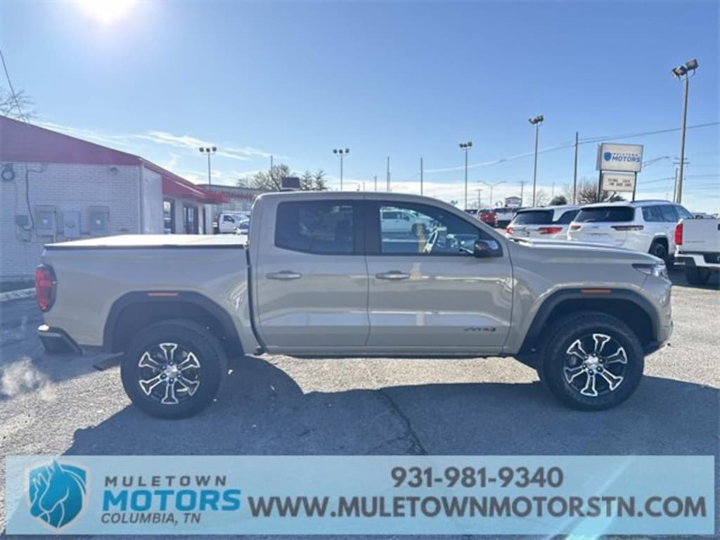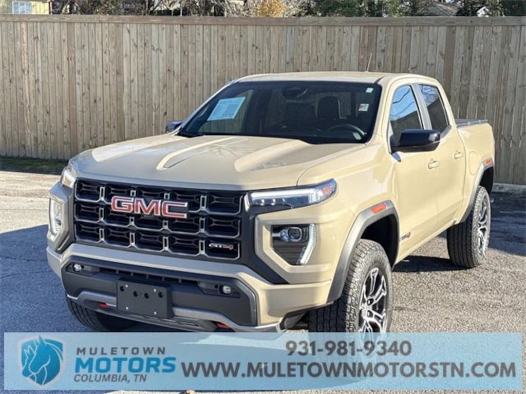 2023 GMC Canyon AT4 | Crew Cab | 4WD | 2.7L Turbo | 8-Speed Automatic | Desert Sand Metallic exterior | Jet Black/Timber cloth interior