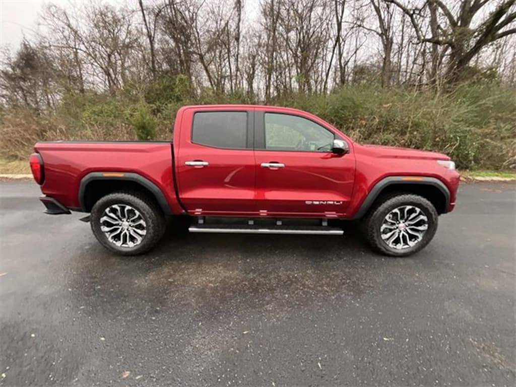 Canyon Safety Plus Package (Blind Zone Steering Assist w/Trailering, Rear Cross Traffic Braking, and Ultrasonic Rear Park Assist), Preferred Equipment Group 5SB (120-Volt Bed Mounted Power Outlet, 2 Rear USB Ports in Center Console (Charge-Only), 5 Rectangular Chrome Assist Steps, 6-Way Power Passenger Seat Adjuster, 8-Way Power Driver Seat Adjuster, Adaptive Cruise Control, Automatic Emergency Braking, Canyon Pro Safety, Driver & Front Passenger Illuminated Visors, Driver & Front Passenger Ventilated Seats, Driver Memory, Driver Seatback Map Pocket, Dual-Zone Auto Climate Control Air Conditioning, EZ-Lift & Lower Tailgate, Following Distance Indicator, Forward Collision Alert, Front LED Fog Lamps, Front Pedestrian & Bicyclist Braking, HD Surround Vision, Heated Driver & Front Passenger Seats, Heated Steering Wheel, Inside Rear-View Auto-Dimming Mirror, IntelliBeam Automatic High Beam On/Off, Interior Overhead Courtesy Light w/Dual Reading Lamp, Lane Keep Assist w/Lane Departure Warning, Multicolor 6.3 Diagonal Head-Up Display, MultiStow Tailgate Storage Compartment, Power Driver Lumbar Control Seat Adjuster, Power Passenger Lumbar Control Seat Adjuster, Premium 7-Speaker Bose Sound System, Rear Center Fold-Down Armrest w/2 Cupholders, Rear of Console 120-Volt Power Outlet, Rear Pedestrian Alert, Remote Vehicle Starter System, Safety Alert Seat, Spray-On Bedliner w/GMC Logo, Tailgate Keyed Cylinder Lock, Tilt & Telescopic Manual Steering Column, and Wireless Phone Charging), Canyon Denali, 4D Crew Cab, 2.7L I4 Turbocharged DOHC 16V LEV3-SULEV30 310hp, 8-Speed Automatic, 4WD, Volcanic Red Tintcoat, Jet Black/Teak Leather, Navigation System, Power Inner Sliding Glass Sunroof w/Manual Shade, 2 1st Row USB Charge/Data Ports, 3.42 Rear Axle Ratio, 4-Wheel Disc Brakes, 7 Speakers, ABS brakes, Air Conditioning, Alloy wheels, AM/FM radio, Apple CarPlay/Android Auto, Auto High-beam Headlights, Auto-dimming Rear-View mirror, Automatic Stop/Start, Automatic temperature control, Brake assist, Bumpers: body-color, Compass, Delay-off headlights, Driver door bin, Driver Mode Selector, Driver vanity mirror, Dual fron