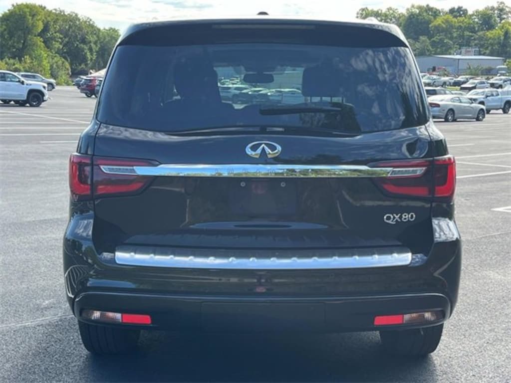 4D Sport Utility, 5.6L V8, 7-Speed Automatic, RWD, Mineral Black, Graphite Leather, Navigation System, Power moonroof, 13 Speakers, 2.94 Axle Ratio, 3rd row seats: split-bench, 4-Wheel Disc Brakes, ABS brakes, Air Conditioning, Alloy wheels, AM/FM radio: SiriusXM, Anti-whiplash front head restraints, Auto High-beam Headlights, Auto tilt-away steering wheel, Auto-dimming door mirrors, Auto-dimming Rear-View mirror, Auto-leveling suspension, Automatic temperature control, Brake assist, Bumpers: body-color, CD player, Delay-off headlights, Driver door bin, Driver vanity mirror, Dual front impact airbags, Dual front side impact airbags, Electronic Stability Control, Emergency communication system: INFINITI Connection, Four wheel independent suspension, Front anti-roll bar, Front Bucket Seats, Front Center Armrest, Front dual zone A/C, Front fog lights, Front reading lights, Fully automatic headlights, Garage door transmitter: HomeLink, Genuine wood console insert, Genuine wood dashboard insert, Genuine wood door panel insert, Heated door mirrors, Heated Front Bucket Seats, Heated front seats, Heated steering wheel, Illuminated entry, Leather Shift Knob, Leather steering wheel, Leather-Appointed Seats w/Stratford Burl Trim, Low tire pressure warning, Memory seat, Occupant sensing airbag, Outside temperature display, Overhead airbag, Overhead console, Panic alarm, Passenger door bin, Passenger vanity mirror, Power door mirrors, Power driver seat, Power Liftgate, Power passenger seat, Power steering, Power windows, Radio data system, Radio: AM/FM/HD Single In-Dash CD/DVD Player w/MP3, Rain sensing wipers, Rear air conditioning, Rear anti-roll bar, Rear audio controls, Rear reading lights, Rear seat center armrest, Rear window defroster, Rear window wiper, Reclining 3rd row seat, Remote keyless entry, Roof rack: rails only, Security system, Speed control, Speed-sensing steering, Split folding rear seat, Spoiler, Steering wheel memory, Steering wheel mounted audio controls, Tachometer, Telescoping steering wheel, Tilt steering wheel, Traction control, Trip computer, Turn signal indicator mirrors, Variably intermittent wipers, Voltmeter, and Wheels: 20 x 8.0 Split 6-Spoke Aluminum-Alloy Parks is the only place you want to do business with. Come by and find out why we were voted Maury County's Best New Car Dealership 3 Years in a row. It's because we do more to save you more!