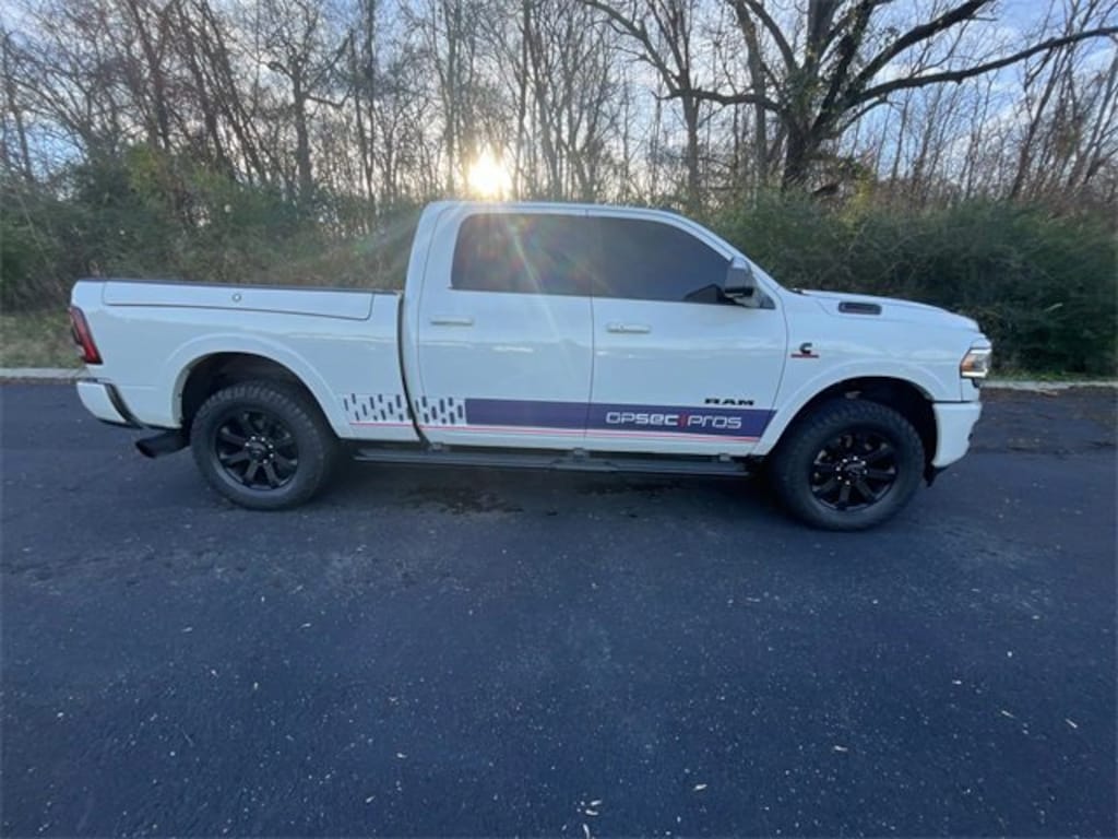 Bed Utility Group (Deployable Bed Step, LED Bed Lighting, and Spray In Bedliner), Laramie Level 1 Equipment Group (2nd Row In Floor Storage Bins, Auto High Beam Headlamp Control, Blind Spot & Cross Path Detection, Exterior Mirrors w/Memory, Foam Bottle Insert (Door Trim Panel), Mirror-Mounted Aux Reverse Lamps, Power Adjustable Convex Aux Mirrors, Power Adjustable Pedals w/Memory, Power Chrome Tow Mirrors w/Convex Spotter & Memory, Radio/Driver Seat/Mirrors/Pedals Memory, Rain Sensitive Windshield Wipers, Remote Tailgate Release, and Ventilated Front Seats), Night Edition (Black Exterior Mirrors, Black Exterior Truck Badging, Black Headlamp Bezels, Black Interior Accents, Black Ram Head Tailgate Badge, Black Tail Lamp Bezels, Black Wheel Center Hub, Body Color Door Handles, Body Color Grille Surround, Gloss Black Grille Billets/Accents, Painted Front Bumper, Painted Rear Bumper, Power Black Tow Mirrors w/Convex Spotter & Memory, and Wheels: 20 x 8.0 Black Painted Aluminum), Quick Order Package 2HH Laramie, 2500 Laramie, 4D Crew Cab, Cummins 6.7L I6 Turbodiesel, 6-Speed Automatic, 4WD, Pearl White, Black Leather, GPS Navigation, 1-Year SiriusXM Guardian Trial, 10 Speakers, 115V Auxiliary Rear Power Outlet, 2 Way Rear Headrest Seat, 220 Amp Alternator, 3.73 Axle Ratio, 4 Way Front Headrests, 4-Wheel Disc Brakes, 400W Inverter, 5-Year SiriusXM Traffic Service, 5-Year SiriusXM Travel Link Service, 8.4 Touchscreen Display, ABS brakes, Active Noise Control System, Adjustable pedals, Air Conditioning, Air Suspension Decal, Alloy wheels, AM/FM radio: SiriusXM, Apple CarPlay, Apple CarPlay/Android Auto, Auto Level Rear Air Suspension, Auto-dimming Rear-View mirror, Automatic temperature control, Brake assist, Bumpers: chrome, Compass, Delay-off headlights, Disassociated Touchscreen Display, Driver door bin, Driver vanity mirror, Dual front impact airbags, Dual front side impact airbags, Electronic Stability Control, Electronically Controlled Throttle, Engine Block Heater, For Details Visit DriveUconnect.com, Front & Rear Rubber Floor Mats, Front anti-roll bar, Front Center Armrest w/Storage, Front dual zone A/C, Front fog lights, Front reading lights, Front Seat Back Map Pockets, Fully automatic headlights, Garage door transmitter, Google Android Auto, GPS Antenna Input, HD Radio, Heated door mirrors, Heated Front Seats, Heated front seats, Heated Steering Wheel, Heated steering wheel, Illuminated entry, Integrated Center Stack Radio, Integrated Voice Command w/Bluetooth, Leather steering wheel, Leather Trim 40/20/40 Bench Seat, Low tire pressure warning, Occupant sensing airbag, Outside temperature display, Overhead airbag, Overhead console, Painted Flat Wheel-to-Wheel Side Steps, Panic alarm, ParkView Rear Back-Up Camera, Passenger