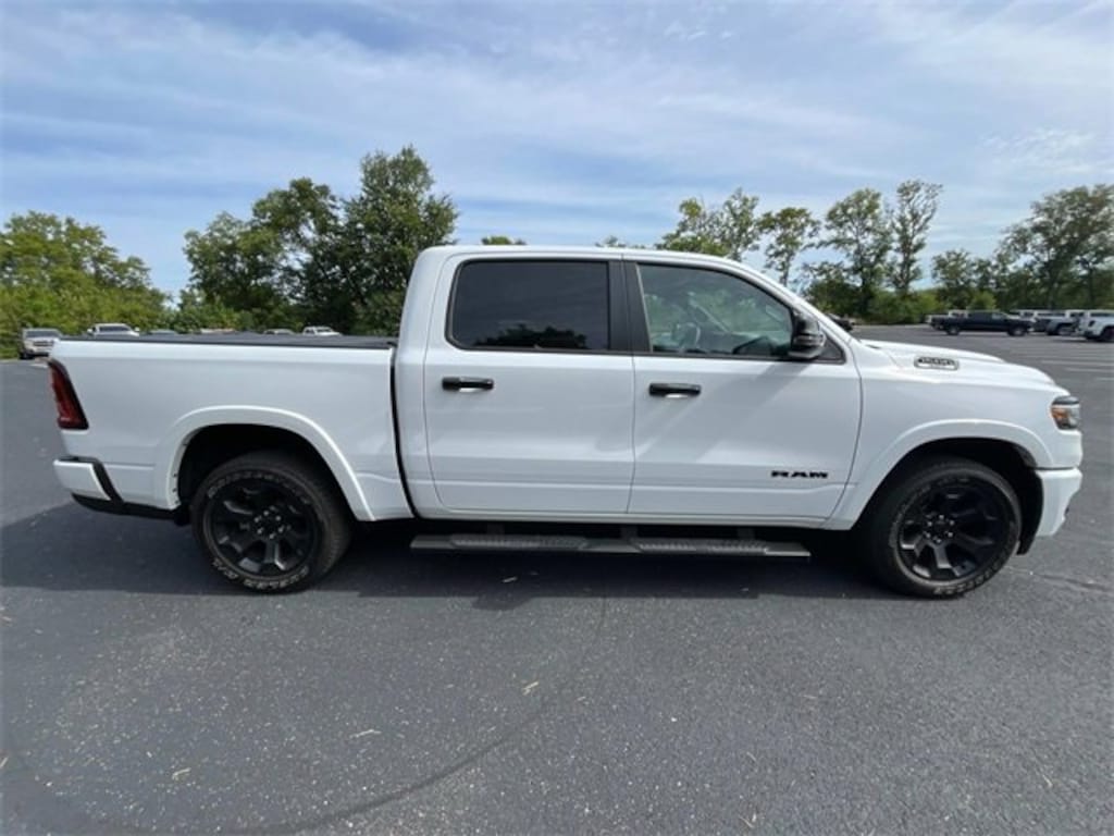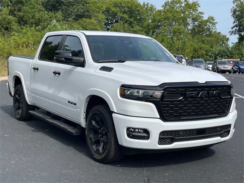 2025 Ram 1500 Big Horn/Lone Star Bright White Clearcoat 1500 Big Horn/Lone Star, 4D Crew Cab, 3.0L I6, 8-Speed Automatic, 4WD, Bright White Clearcoat, Black Cloth, 115V Auxiliary Power Outlet, 115V Auxiliary Rear Power Outlet, 12 Touchscreen Display, 2nd Row In Floor Storage Bins, 3 Rear Seat Head Restraints, 4 Way Front Headrests, 400W Inverter, 4G LTE Wi-Fi Hot Spot, 9 Amplified Speakers w/Subwoofer, Accent Color Door Handles, Accent Color Premium Power Mirrors, Accent Color Tailgate Handle, Air Conditioning ATC w/Dual Zone Control, Anti-Spin Differential Rear Axle, Apple CarPlay, Auto Power-Folding Mirrors, Auto-Dimming Exterior Driver Mirror, Auto-Dimming Rear-View Mirror, Big Horn Level 2 Equipment Group, Black Exterior Mirrors, Black Exterior Truck Badging, Black Headlamp Bezels, Black Interior Accents, Black Painted Exterior Mirrors Caps, Black Premium Power Mirrors, Black Tail Lamp Bezels, Body Color Front Bumper, Body Color Rear Bumper w/Step Pads, Bucket Seats, Cluster 7.0 TFT Color Display, Configurable Drive Mode, Connected Travel & Traffic Services, Connectivity - US/Canada, Convex Wide-Angle Exterior Mirror Insert, Deluxe Cloth Bucket Seats, Dome Dual LED Reading Lamp, Dual-Pane Panoramic Sunroof, Exterior Mirrors Courtesy Lamps, Exterior Mirrors w/Heating Element, Exterior Mirrors w/Supplemental Signals, Front Seat Back Map Pockets, Full Length Floor Console, Glove Box Lamp, Google Android Auto, GPS Antenna Input, GPS Navigation, Grille Black Surround Black Mesh, HD Radio, Heated Front Seats, Heated Steering Wheel, Integrated Voice Command w/Bluetooth, Leather Wrapped Steering Wheel, LED Dome Lamp w/On/Off Switch, LED Footwell Lighting, Manual Adjust 4-Way Front Passenger Seat, Media Hub w/2 Charge Only USBs, Night Edition, Overhead LED Lamps, Power 2-Way Driver Lumbar Adjust, Power Adjust 8-Way Driver Seat, Power Adjustable Pedals, Premium Overhead Console, Quick Order Package 21Z Big Horn, Radio: Uconnect 5 Nav w/12.0 Display, RAM Grille Badge - Black, Rear 60/40 Folding Seat, Rear Center Armrest, Rear Power Sliding Window, Rear Window Defroster, Remote Tailgate Release, Security Alarm, SiriusXM w/360L, Steering Wheel Mounted Audio Controls, Sun Visors w/Illuminated Vanity Mirrors, Universal Garage Door Opener, USB Host Flip, Wheels: 20 x 9.0 Aluminum Painted Clad.